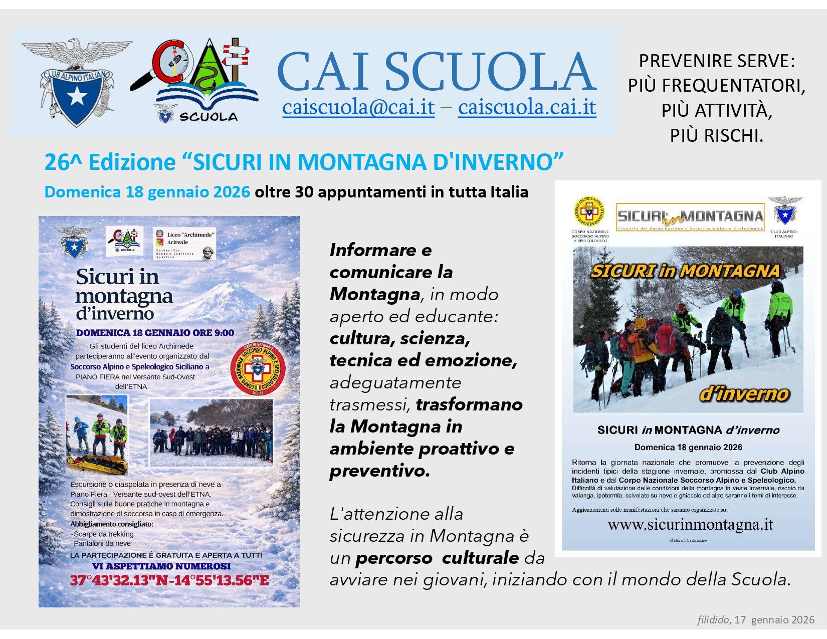 26^ Edizione “SICURI IN MONTAGNA D’INVERNO” – Cai Scuola