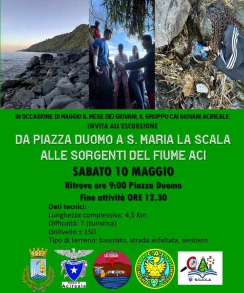 Il giorno dopo, 10 maggio, altra attività organizzata da Cai giovani di Acireale (tra cui alcuni studenti del PCTO Liceo Statale Archimede) in occasione di MAGGIO, mese dei GIOVANI voluto dal Comune di Acireale in collaborazione con le associazioni del territorio.
