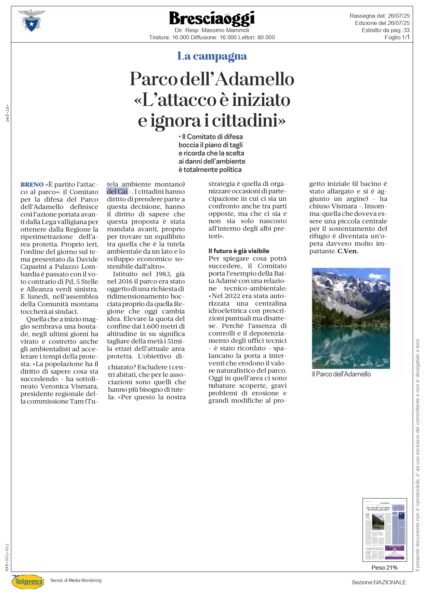 E invece di prestare attenzione al valore di insieme della Montagna c’è anche la proposta di dimezzare il Parco dell’Adamello. Il ghiacciaio dell’Adamello è il più grande ghiacciaio delle Alpi italiane. Una realtà che vede un puzzle di parchi tra Adamello, Adamello Brenta, Stelvio ed Engadina. Territori unici ed affascinanti la cui sorte va portata all’attenzione del grande pubblico, dei giovani e del mondo della scuola.