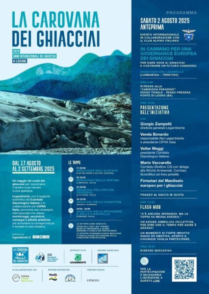 Il l 2 agosto 2025, nell’Anno Internazionale della preservazione dei Ghiacciai,  al Passo del Tonale-Passo Presolana, un importante incontro di riflessione sul futuro di una delle risorse fondamentali che regola il clima e fornisce acqua dolce. Il Cai guarda con attenzione a questi grandi castelli di ghiaccio, in prima linea per la crisi climatica, che gli sta rapidamente sciogliendo.