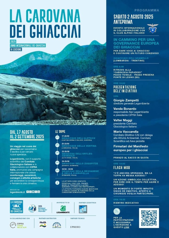 Il MANIFESTO EUROPEO PER una GOVERNANCE DEI GHIACCIAI E DELLE RISORSE CONNESSE è stato presentato il 20 marzo 2025 a Milano con intervento di Giacomo Benedetti, Vice Presidente Generale Cai. E’ possibile scaricarlo dalla pagina on line: