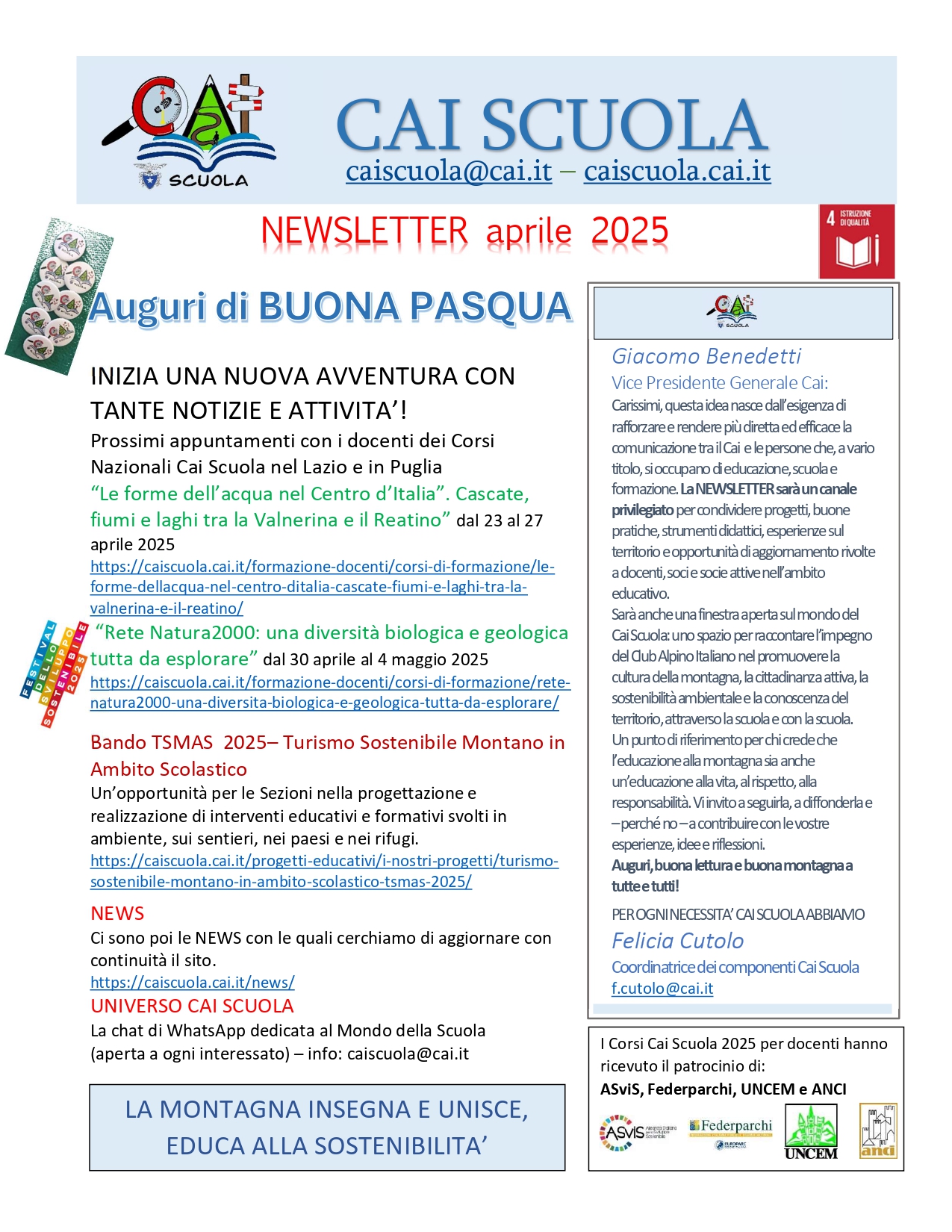 NEWSLETTER CAI SCUOLA – aprile 2025