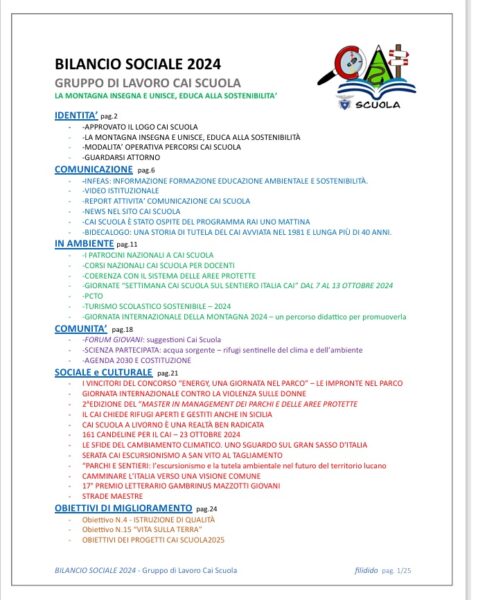 Cai Scuola: pagine 85 – 87 nel Bilancio Sociale Cai 2024 (link)