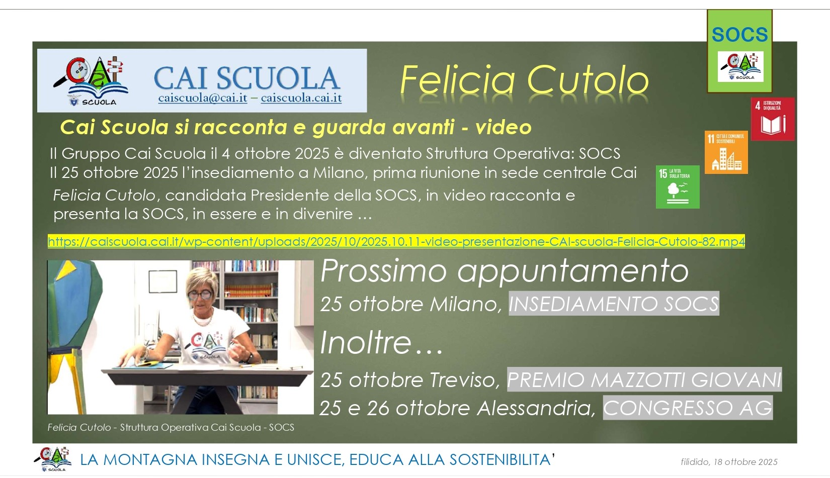 CAI SCUOLA SI RACCONTA E GUARDA AVANTI: Felicia Cutolo verso la Presidenza della Struttura Operativa SOCS.