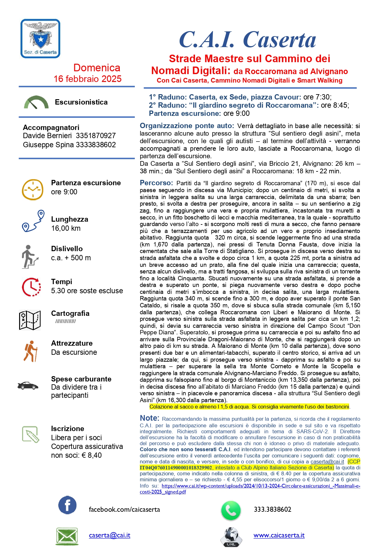 CAMPANIA: 15 e 16 febbraio 2025 – Strade Maestre a Roccaromana con la Sezione Cai di Caserta
