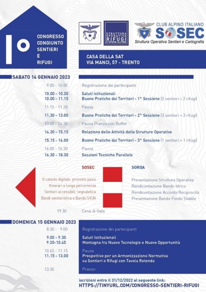 Trento – Parole del 2023 a Trento il 14 e 15 gennaio 2023, in occasione del Congresso Cai congiunto su SENTIERI E RIFUGI.