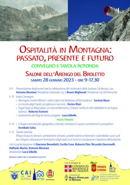 Novara – Sempre nel 2023, 28 gennaio, un’importante occasione di riflessione: OSPITALITA’ IN MONTAGNA: passato, presente e futuro