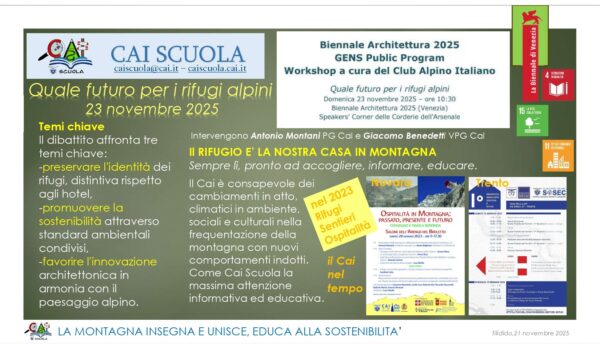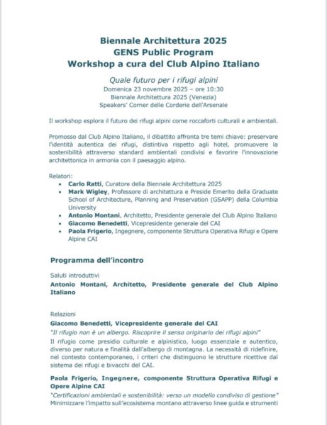 Club Alpino Italiano: Quale futuro per i rifugi alpini – domenica 23 maggio, Biennale Architettura 2025 (Venezia) – Cai Scuola
