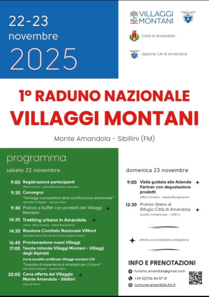 Inoltre all’accoglienza dei Rifugi si aggiunge quella dei “paesi montani”, presenti capillarmente a ulteriore presidio della Montagna, oggi riconosciuti dal Cai anche come “villaggi montani” (accolti ad Amandola nel 1° raduno nazionale, 22 e 23 novembre 2025).