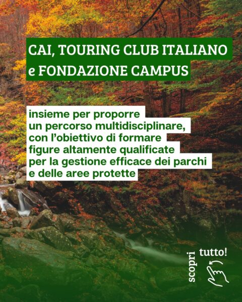CLUB ALPINO ITALIANO, TOURING CLUB ITALIANO E FONDAZIONE CAMPUS: 3a edizione del “MASTER EXECUTIVE in management dei parchi e delle aree protette“- Cai Scuola