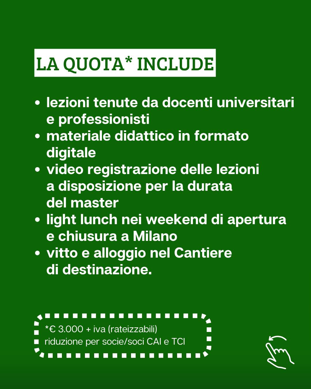 Esclusivamente per gli iscritti Touring e CAI: € 2.800 + iva (rateizzabili)
