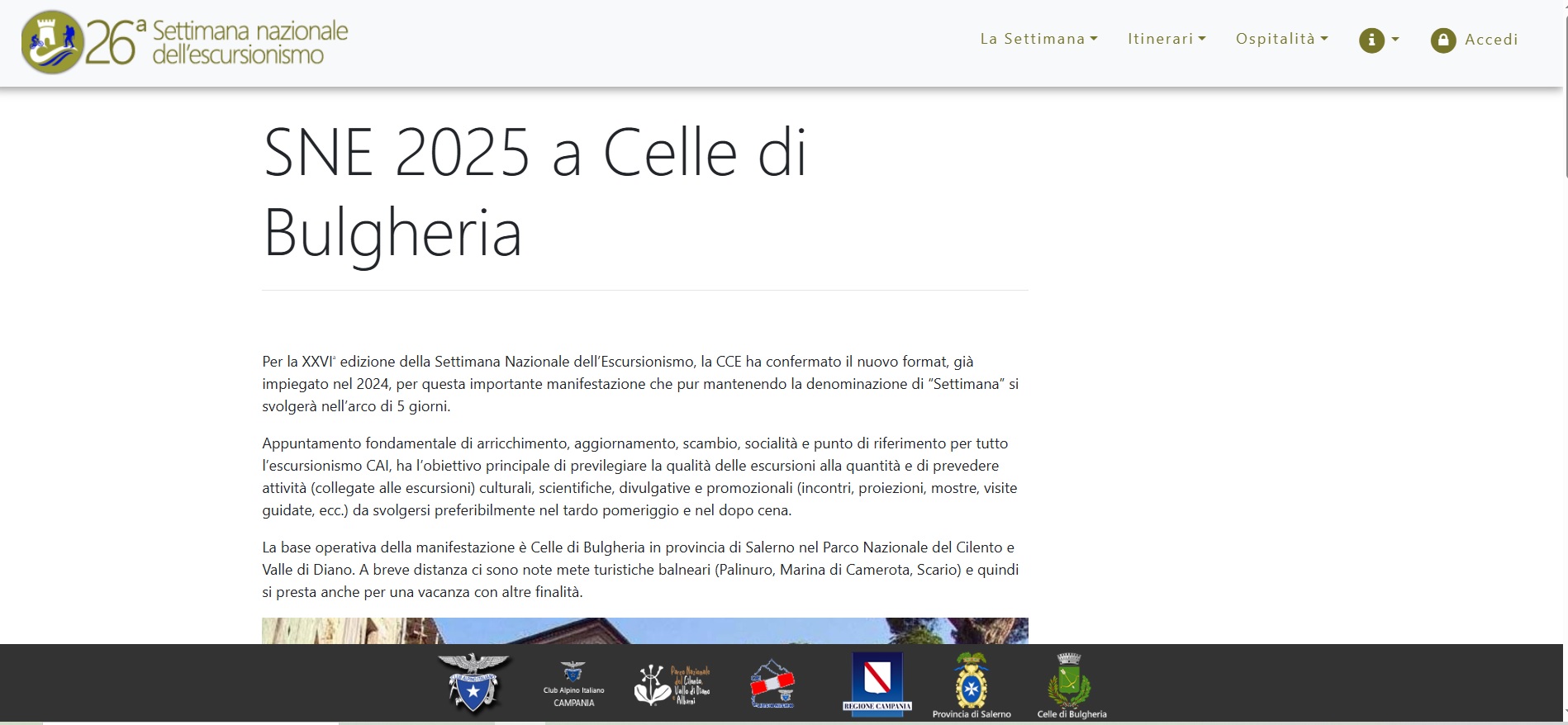 – il 12 settembre 2025 – intervento nella 26^ Settimana Nazionale Escursionismo a Celle di Bulgheria, prevista dal 10 al 14 settembre.