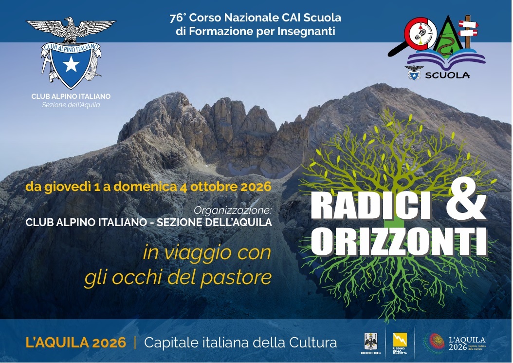 In questo scenario culturale si inserisce Cai Scuola che ha organizzato, insieme alla Sezione Cai L’Aquila, un Corso nazionale per docenti “in viaggio con gli occhi del pastore” che si svolgerà dal 1 al 4 ottobre 2026 nella sede Cai L’Aquila, con attività esperienziali e laboratoriali nella città e nell’ambiente montano del Parco Nazionale del Gran Sasso e Monti della Laga.