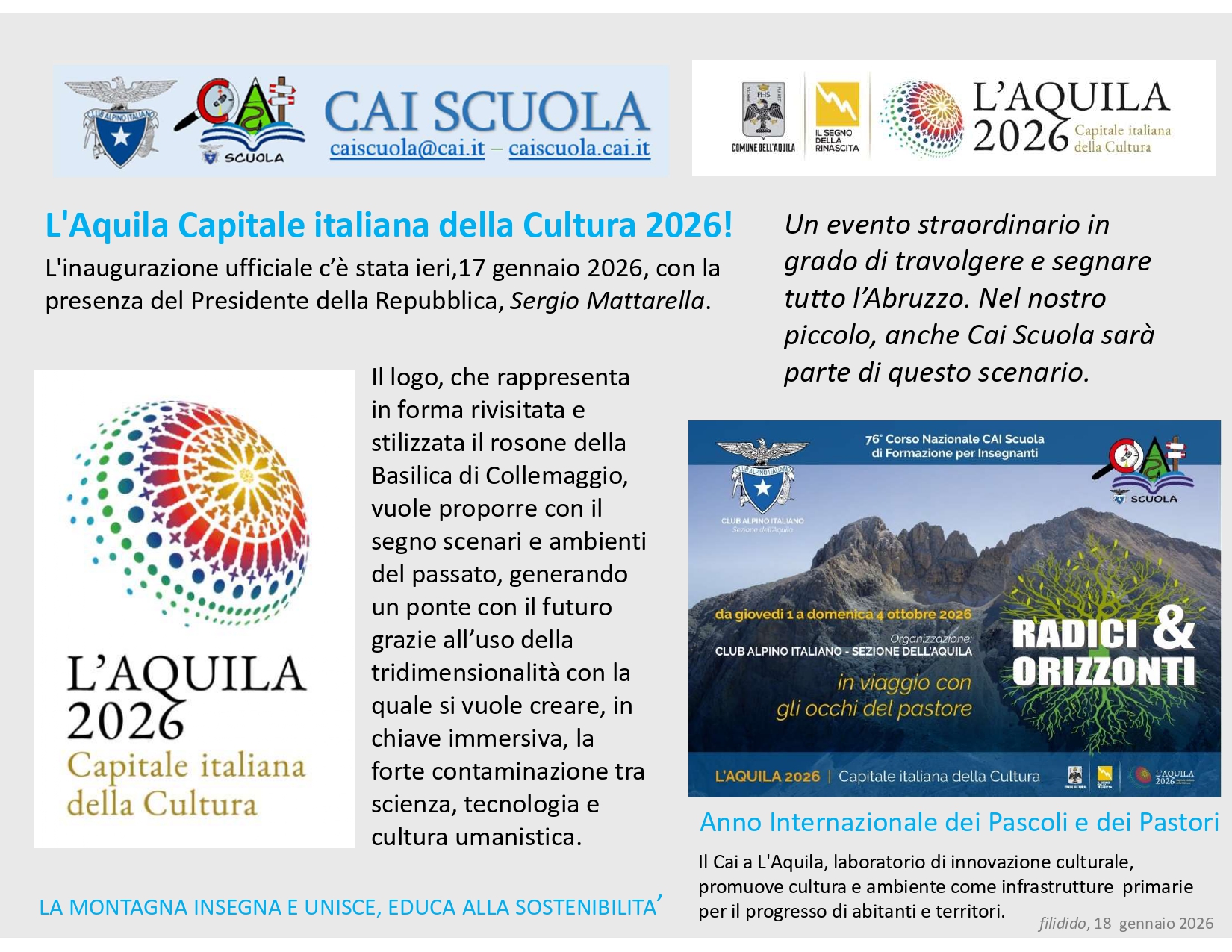 Home - News - L’Aquila Capitale italiana della Cultura 2026! – Cai Scuola