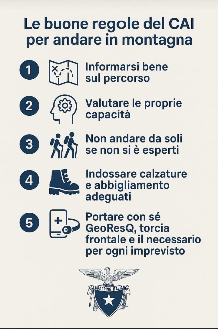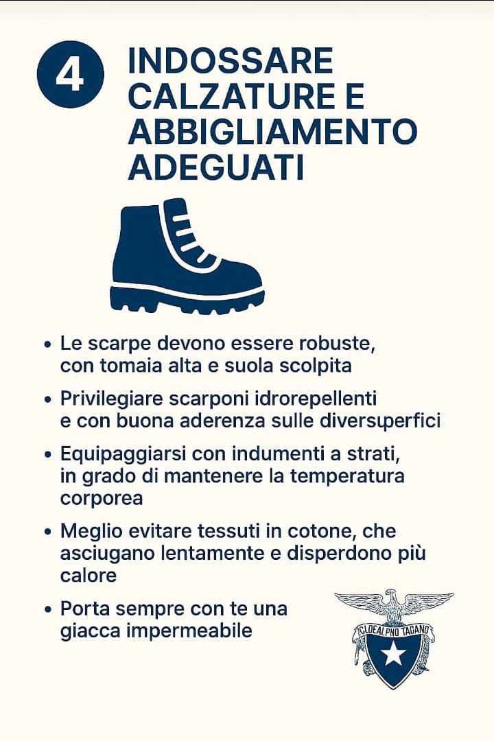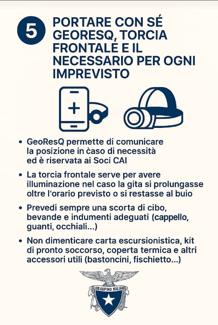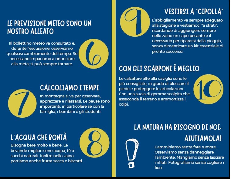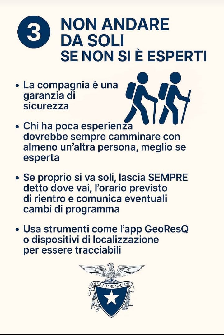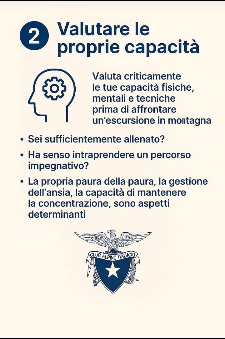 che richiamano l’attenzione su alcuni comportamenti da adottare, legati al buon senso e all’opportunità di vivere esperienze appaganti in montagna, da poter raccontare e consigliare con piacere. Se sei inesperto affidati all’esperienza di una Sezione Cai.