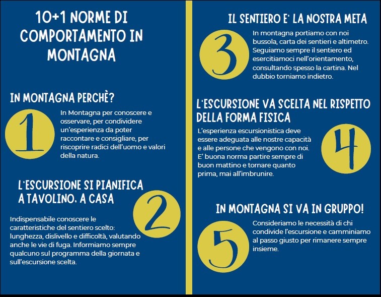 CAI SCUOLA CONDIVIDE ALCUNE NORME DI COMPORTAMENTO – SEMPLICI E DI BUON SENSO – TUTTE AIUTANO A FREQUENTARE LA MONTAGNA CON SODDISFAZIONE E CONSAPEVOLEZZA