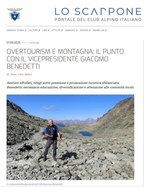 Articolo Lo Scarpone on line: Overtourism e montagna: il punto con il vicepresidente Giacomo Benedetti (link)