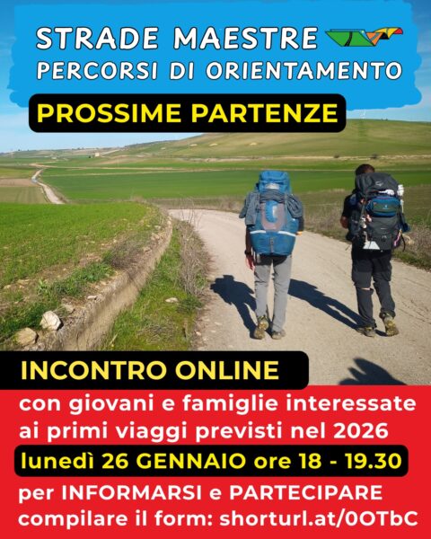Nel 2026 partiranno i primi Percorsi di orientamento di Strade Maestre: il nuovo progetto educativo di CamminaMenti dedicato a giovani fra 16 e 26 anni che propone di intraprendere un viaggio che dura tra 4 e 12 settimane, alternando giornate di cammino e periodi residenziali, volto a esercitare la conoscenza di se stessi e del mondo, sperimentare modalità inedite di abitare il presente, rielaborare il percorso vissuto e immaginare quello futuro.