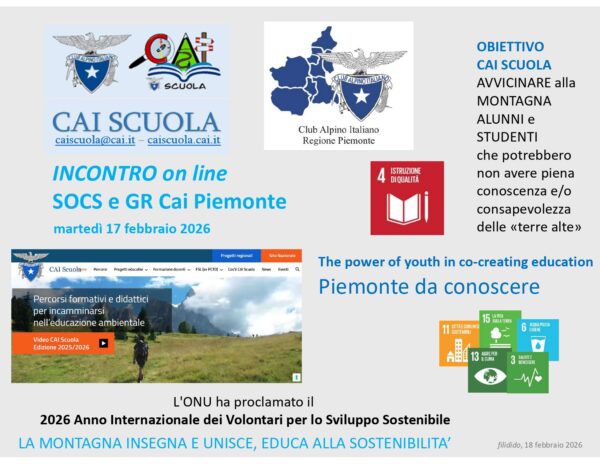 - presentare la SOCS, il sito Cai Scuola e il Programma attività 2026,