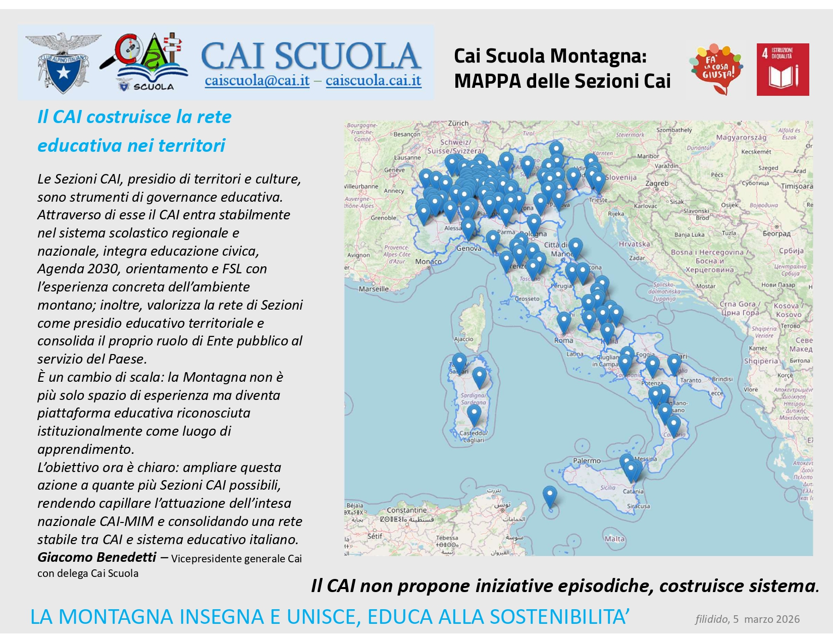 Il Cai costruisce la rete educativa dei territori: Giacomo Benedetti Vicepresidente generale Cai con delega Cai Scuola