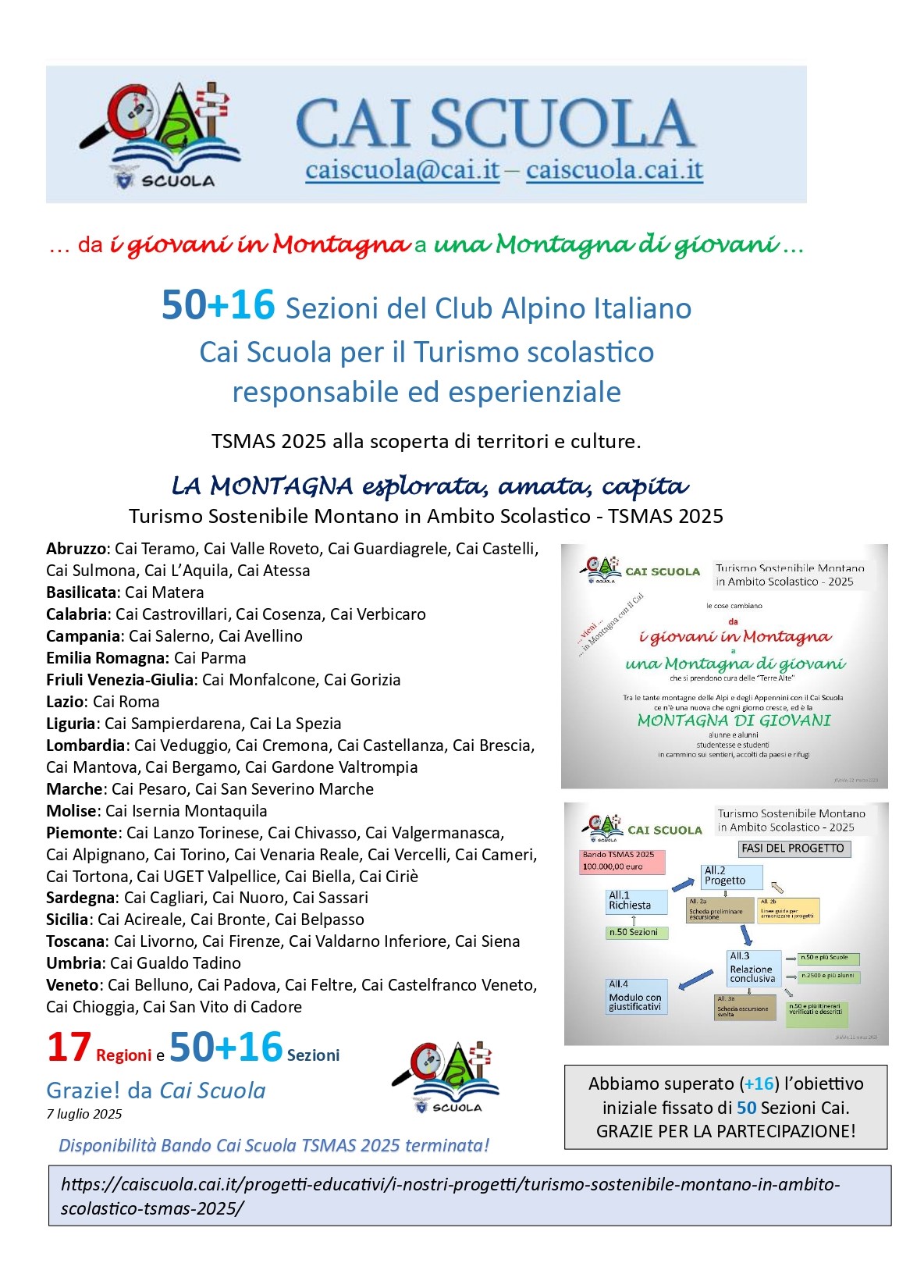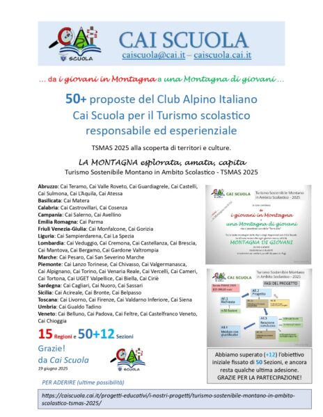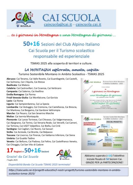 TSMAS 2025 hanno aderito n. 50+18 Sezioni Cai da 18 Regioni